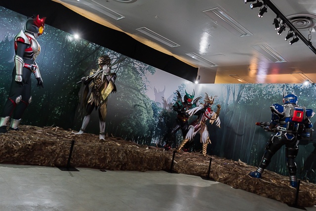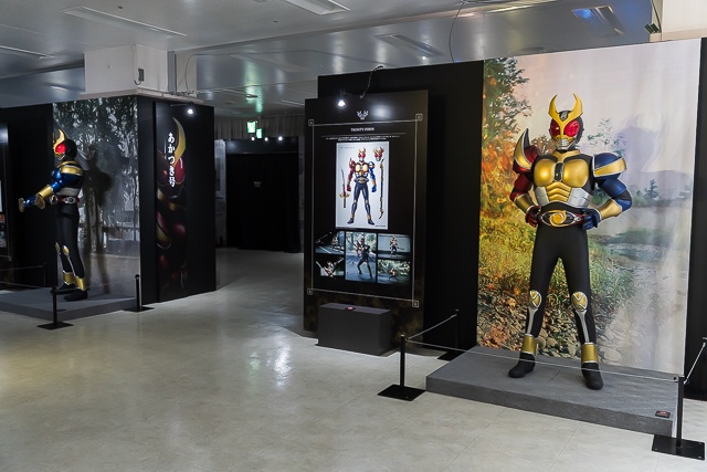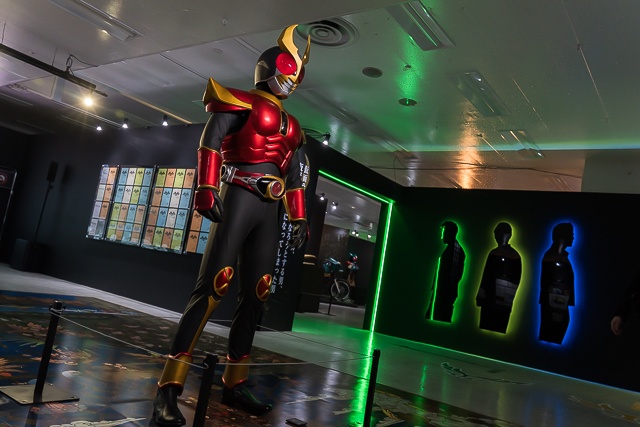 Al acceder a la exposición, los visitantes son recibidos por una impresionante recreación de Kamen Rider Agito en su forma Ground junto a la icónica Machine Tornader, acompañados de un vídeo exclusivo que introduce el universo del evento.